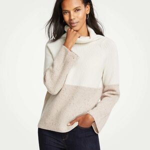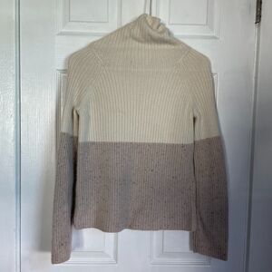 Ann Taylor Colorblock Ribbed 100% Cashmere Sweater