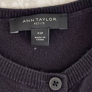 Ann Taylor Cotton Blend Black Button Down Crew Neck Basic Cardigan in a size XS Petite