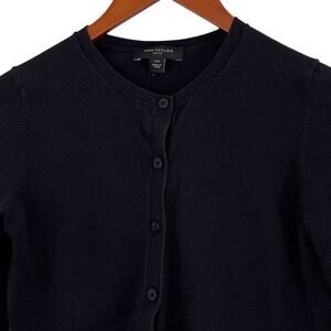 Ann Taylor Cotton Blend Black Button Down Crew Neck Cardigan, Size XSP