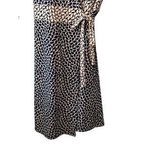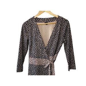 Ann Taylor Cream & Black Print Long Sleeve Wrap Dress Women's Sz 4