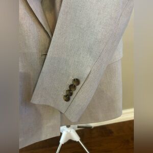 Elegant cream blazer with subtle pinstripe lining with matching pants. Ideal for professional settings.