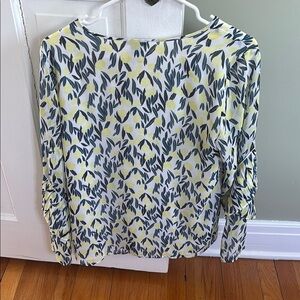 Ann Taylor Cream Blouse with Graphic Design and 3/4 Sleeves