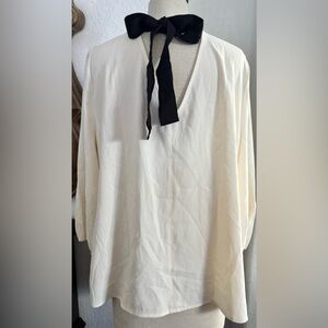 Ann Taylor Cream Blouse with adjustable straps Elegant Bow V-Neck Women's L