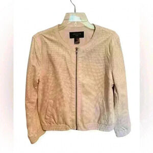 Ann Taylor Cream Colored Pleather Jacket Size Large Petite