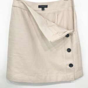 Ann Taylor Cream Cotton Textured Side Button Mini A Line Skirt