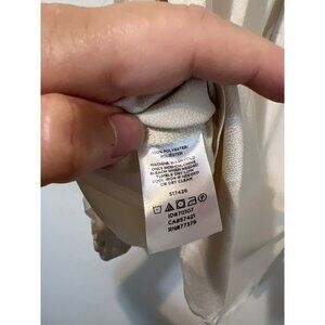 Ann Taylor Cream Sz M Blouse Covered Buttons Balloon Printed Sleeves