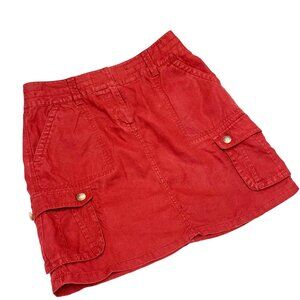 Ann Taylor Crimson 100% Linen Cargo Mini Skirt
