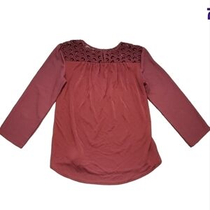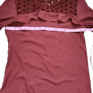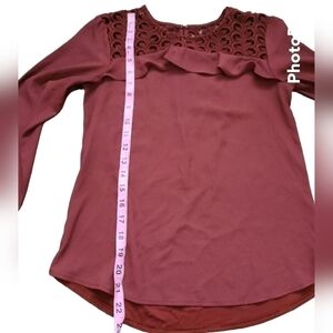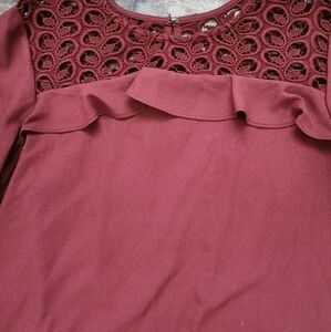Ann Taylor Crochet Ruffle Contrast Blouse Petite