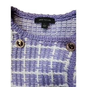 Ann Taylor Crochet Twee Sweater Cardigan Womens Double-breasted Lavender Checked Corpcore