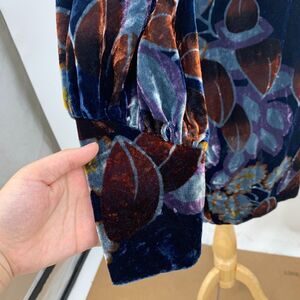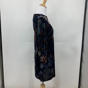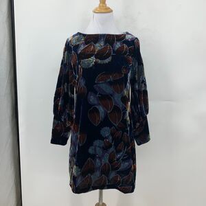 ANN TAYLOR CRUSHED VELVET DRESS WOMENS 00P PETITE NAVY FLORAL PRINT BACK ZIP