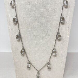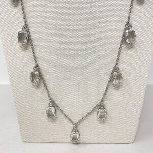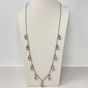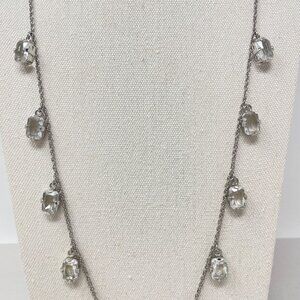 Ann Taylor Crystal Drop Necklace Silver-Tone Long Classic Elegant Dressy