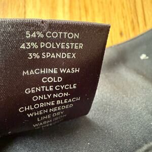 Additional Details: flat front, straight leg, 2 front pockets (sewn but can be opened), 2 faux back pockets, wide waistband, zipper & 2-clasp closure, stretch.