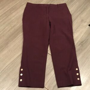 Ann Taylor Curvy Fit Burgundy Ankle Length Pants with 3 Gold Button Details at Hem