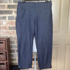Ann Taylor Dark Blue Chambray Denim Cropped Trousers Flat Front Preppy Classic