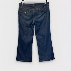 Stylish wide leg pants. Dark blue denim. Perfect for casual wear.