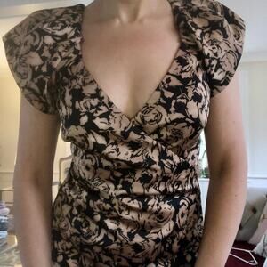 Ann Taylor Dark Floral V-Neck Sleeveless Blouse Shell Top Workwear Size 0