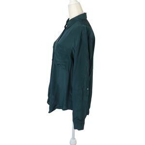 Ann Taylor Dark Green Silk Long Sleeve Button-Down Blouse Top M