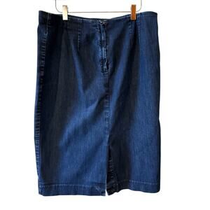 Ann Taylor Denim Pencil Jean Skirt, size 12T. Good preowned condition, Cotton poly spandex. blend with back zipper and kick pleat