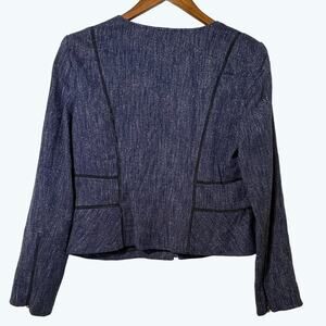 Ann Taylor Designer Blue Linen & Cotton Cropped Denim Look Jean Jacket 12