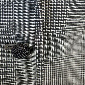 This stunning Ann Taylor suiting features a classic plaid design with a wool blend, perfect for a sophisticated look. The bow pockets and knot buttons add elegance, while the fully lined interior ensures comfort and durability. Jacket Size 8, Pants Size 6.