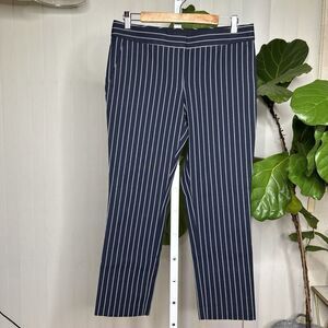 Ann Taylor Devin Fit Pants Striped Straight Leg Navy and White Pockets Size 6