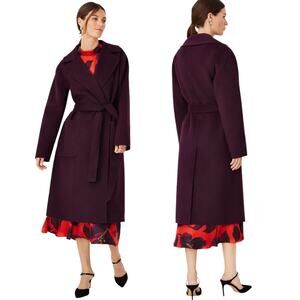 Ann Taylor Doubleface Belted Blanket Coat Waist Tie Vineyard Grape Size LP
