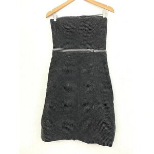 Ann Taylor Dress Black Strapless White Polka Dot Sheath Built-in Bra Size 6