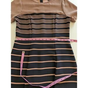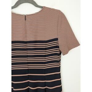 Ann Taylor Dress Fit Flare Ombre Striped Career Neutral Blue Pink Classic Size 8