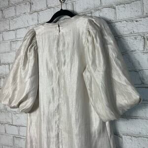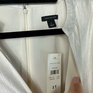 Ann Taylor Dress Shimmer Puff Sleeve Mini Sheath White Silver NEW NWT 2 T Tall