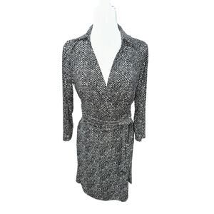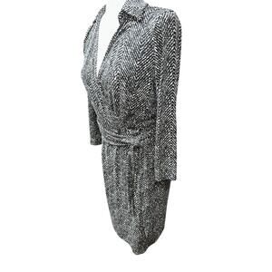 Ann Taylor Dress Surplice Collared Stretch Black Cream 8 Career Office Travel