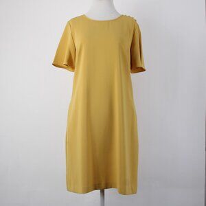 Ann Taylor Dress Sz 10 Mustard Yellow Pockets Knee Length 100% Polyester Dress