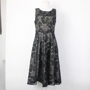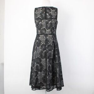Ann Taylor Dress Sz 4 Black Grey Floral Lined Zip Nylon Polyester Dress
