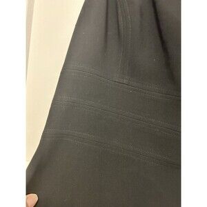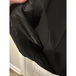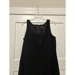 The dress is beautifully designed with a solid black color and subtle accents such as a collarless neckline and slimming features. It is lined and comes in size 14. The dress is perfect for all seasons, including winter, summer, fall, and spring. This timeless and chic dress is a must-have for any fashion-forward woman.