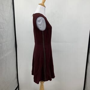 ANN TAYLOR DRESS WOMENS 2 DEEP BURGUNDY FAUX LEATHER SIDE BRAIDED BACK ZIP SHIFT