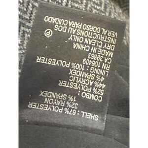 Material: Shell is 67% polyester, 32% rayon, 1% spandex; Combo is 52% polyester, 44% rayon, 4% spandex