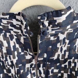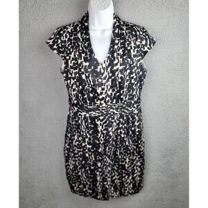 Ann Taylor Dress Womens 8 Black Brown Cream Geometric V-Neck Corpcore Siren