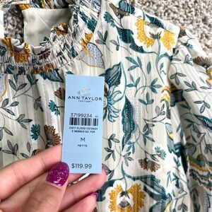 New with Tags Women’s Ann Taylor Factory White, Teal and Yellow Floral Print Long Sleeve Mock Neck A-Line Shift Dress in Size Medium Petite