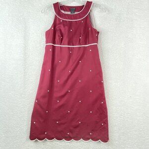 Ann Taylor Dress Womens Sheath 0 Mauve Polka Dot Sleeveless Scalloped Hem Lined