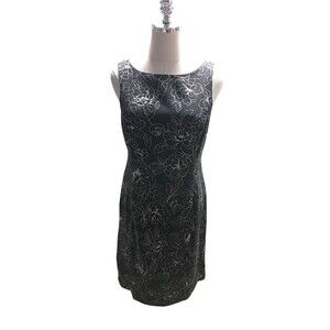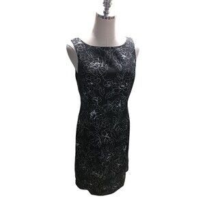Ann Taylor Dress Women's Size 6 Petite Black White Floral Silk Sleeveless