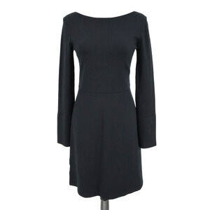 Ann Taylor Dress Womens XS Black Stretch Knit Boat Neck Long Slit Cuffs Bell New