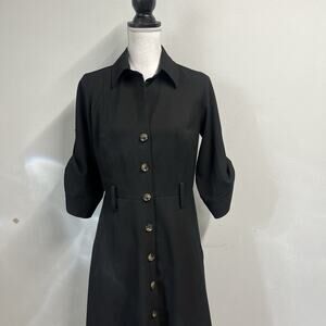 Ann Taylor Dress size 6 Classic Black Button Front Career Knee Stretch Modest