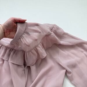 Ann Taylor Dusty Pink Ruffle Chiffon Blouse, Size Large