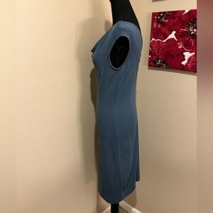 Ann Taylor Elegant Blue-Green Drape Neck Cap Sleeve Form-fit Dress, size 0
