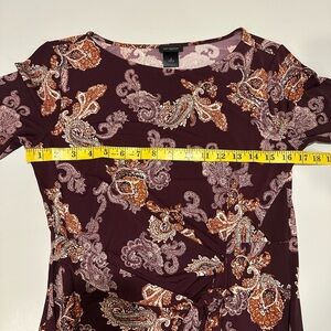 Step out in style with this elegant paisley print dress. Featuring a rich burgundy color, it's perfect for any occasion. EUC