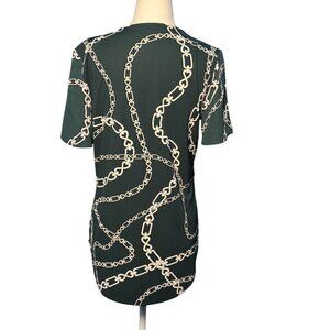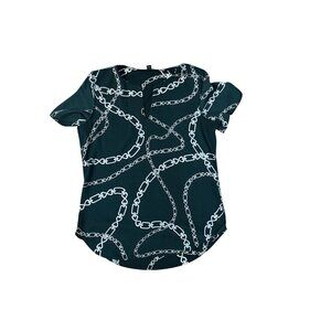 Ann Taylor Elegant Top XS Green White Chain Luxury Print Blouse Short Sleeve