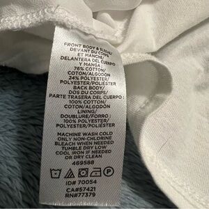 This elegant white lace top is perfect for any occasion. Its intricate design adds a touch of sophistication to your wardrobe. Lace is only on the front. Back of top is solid white. Machine wash. Excellent condition.