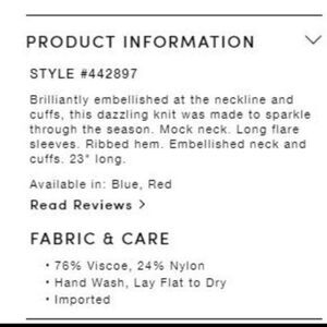 Ann Taylor Embellished Mock Neck Bell Sleeve Knit Sweater Women's Size Small