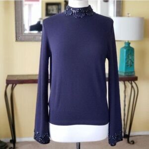 Ann Taylor Embellished Mock Neck Bell Sleeve Knit Sweater Women's Size Small