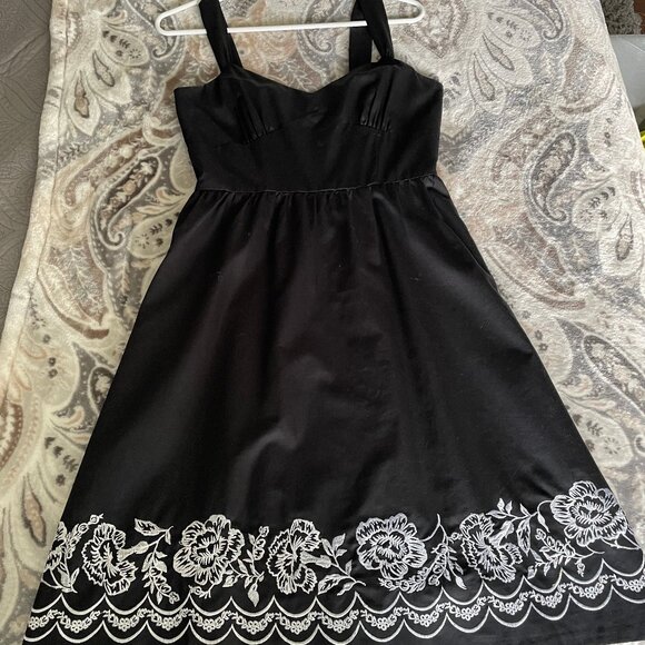 Ann Taylor Embroidered Black Dress 4P