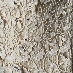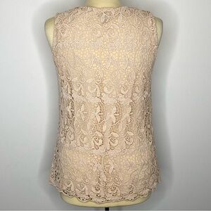 Ann Taylor Embroidered Lace Top. Sleeveless top with lace overlay and embroidered jeweled applique on front, plain lace back. Top is fully lined.